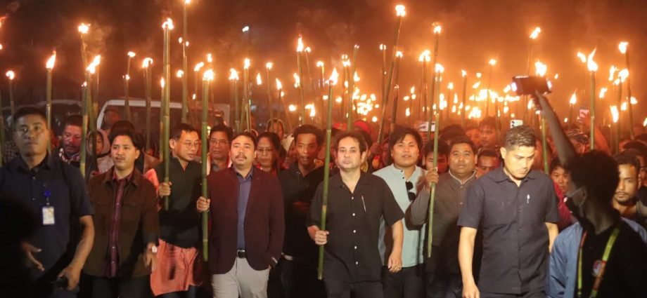 রোমান স্ক্রিপ্টের দাবিতে আগরতলায় টিএসএফ ও টিআইএসএফ-এর মশাল মিছিল